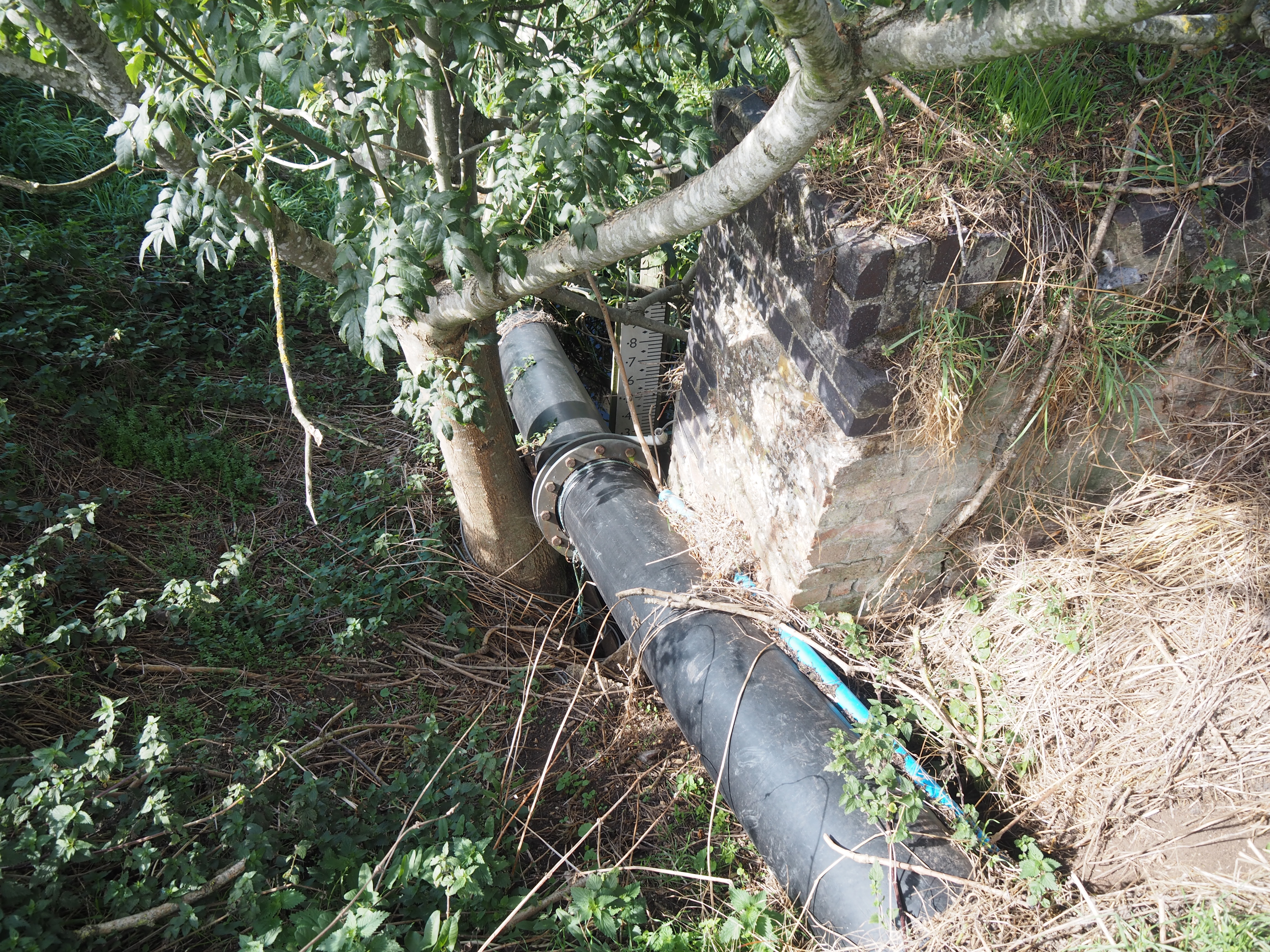 Abstraction from Bedford Ouse at EarithWhen viewed in 2011 and 2012 the inlet pipes were still in place but appeared to be blanked off. |