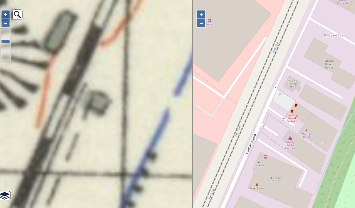I've not found details of the Laboratory's location but am fairly certain it was where circled. On the left, the 1930s-60s map shows an isolated building at what was then the end of Coldham's Road. The road has been lengthened by the warehouse development to the north, but at a distinctly different width. The Laboratory site would have been in the current car-park. Click map for site enlargement.