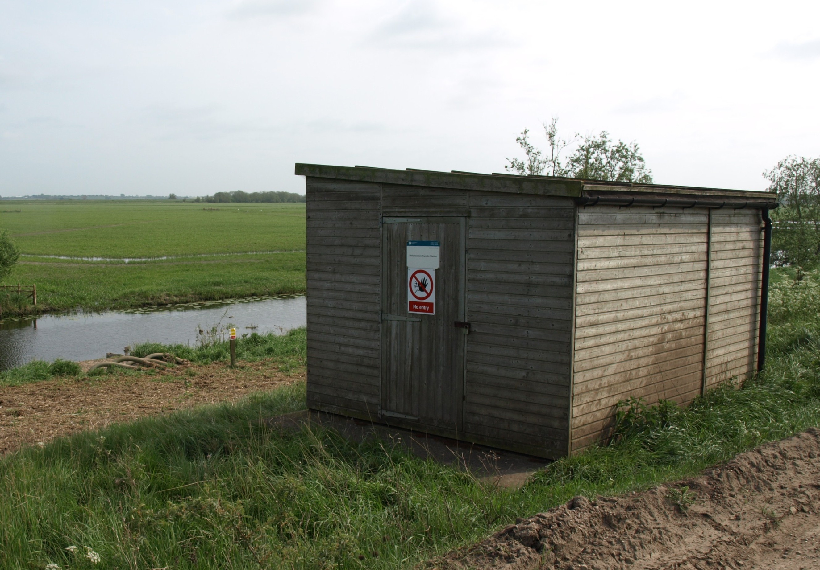 Transfer StationThis is situated south (upstream) of the Pumping Station. Seen below looking south, on the left is the Old Bedford River (which becomes the Delph River) and the barrier bank; in the centre is the wooden pumphouse; on the right is the Counter Drain (which becomes the Old Bedford River).![]() It was used (may be still is?) to transfer water from the Old Bedford River into the Middle Level system for irrigation during drought. Three 300mm inlet valves under the centre gate at Erith Sluice could be opened if the level in the Bedford Ouse was above 2.13m AOD and here water could be taken out via four six-inch pipes. Flow meters at Erith and here enabled the volumes of water coming in & going out to be balanced. (Source: NRA OW WLMP, March 1996.) Earith Sluice was refurbished in 2010 and according to Ryan Ely the EA Project Manager "the redundant water transfer system below the centre sluice gate has been removed". back to contents |