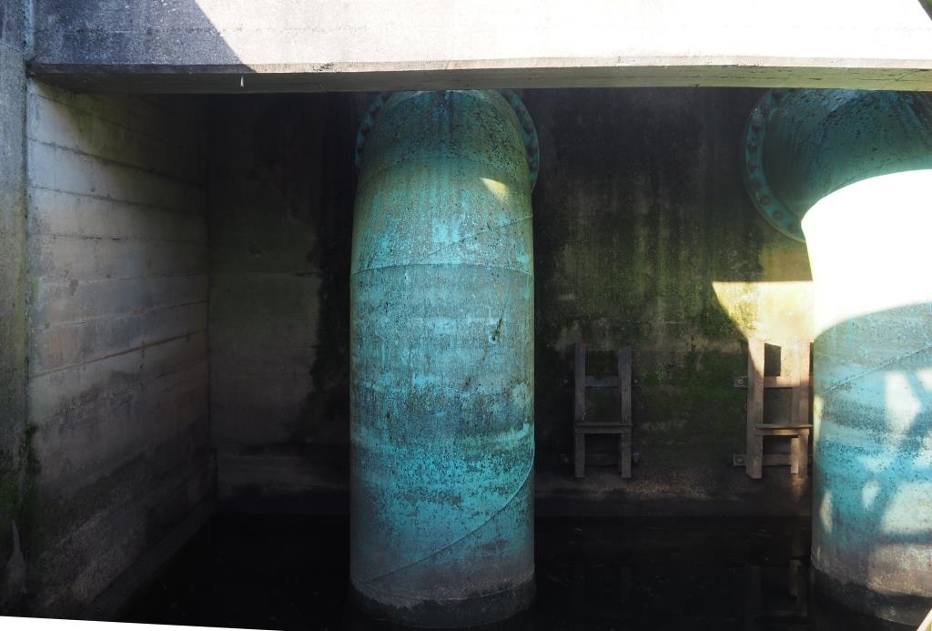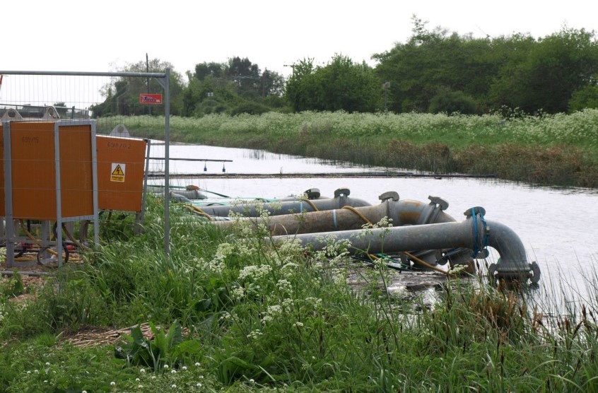 - Installation of four new Bedford 2.5 cumec axial flow pumpsets, syphon breaking valves, and discharge pipework. Despite claims at the time that the pumps would provide same capacity as the diesel plant, it was only 80%.