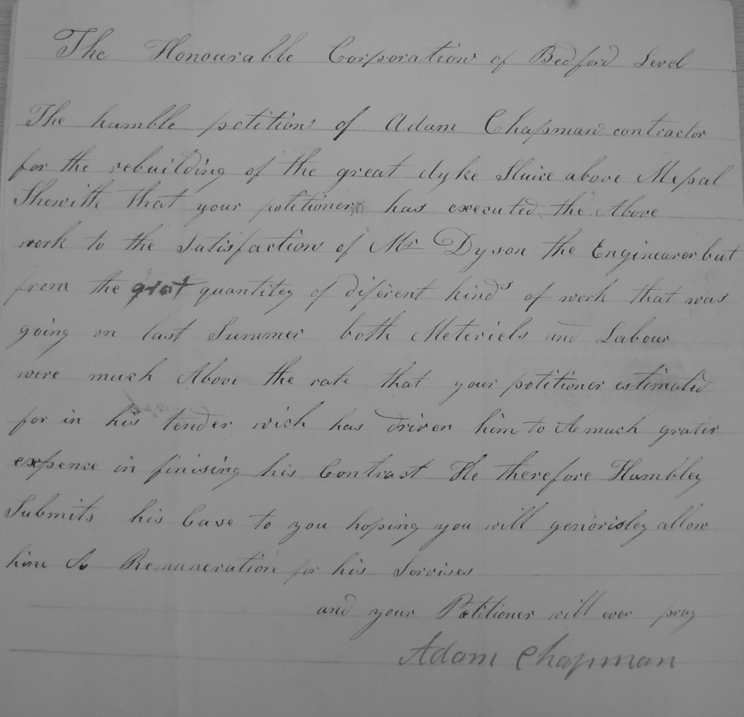 Petition for a sluice in the Great Dyke "to improve drainage of the