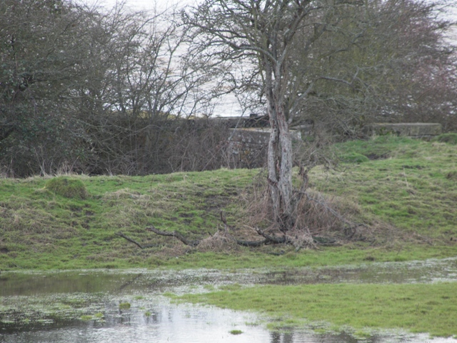 Near the south end of the Dyke, on what appears to be a small island, are the remains of an old lock, seen here from the viaduct in Jan 2013 when