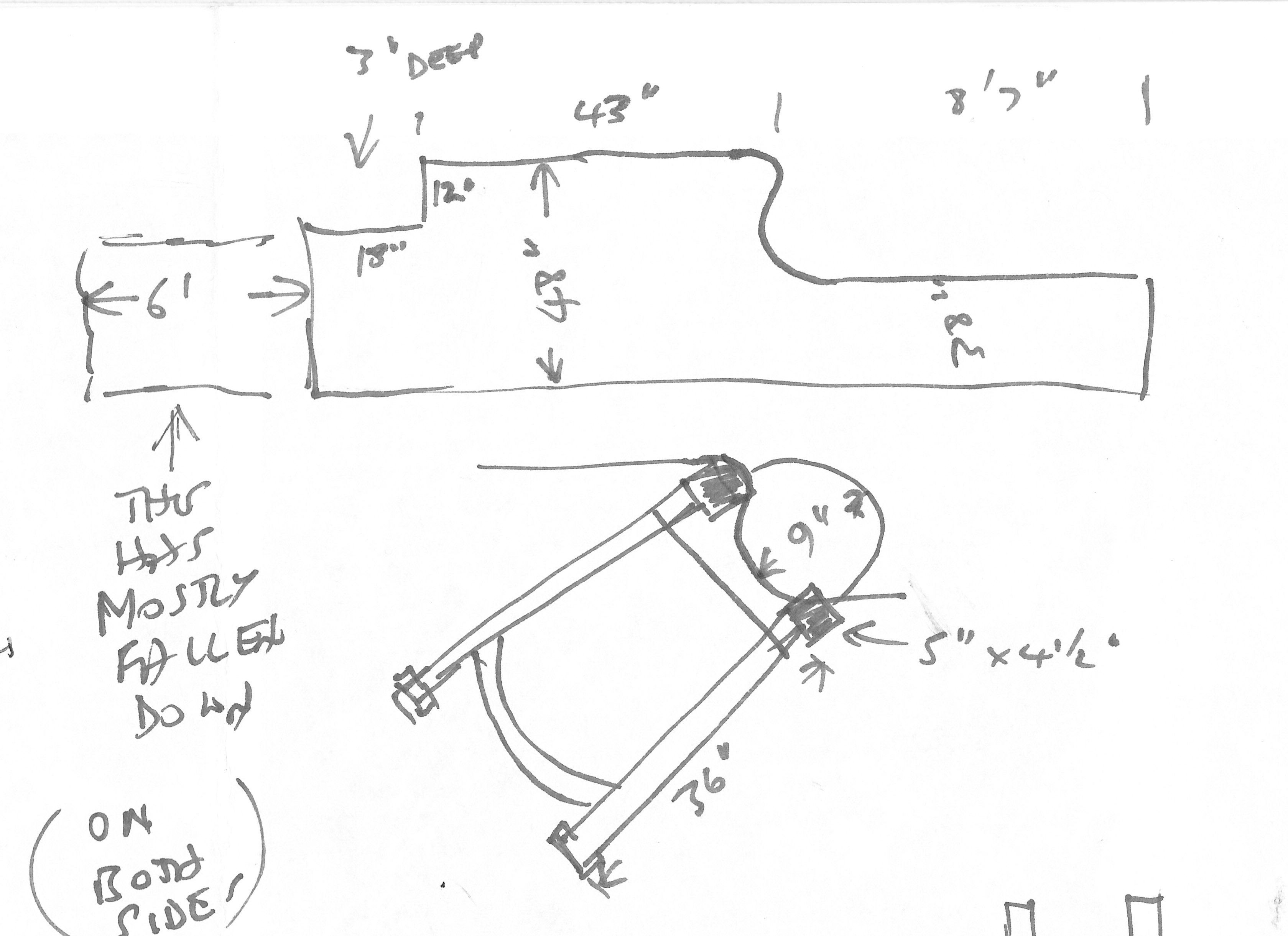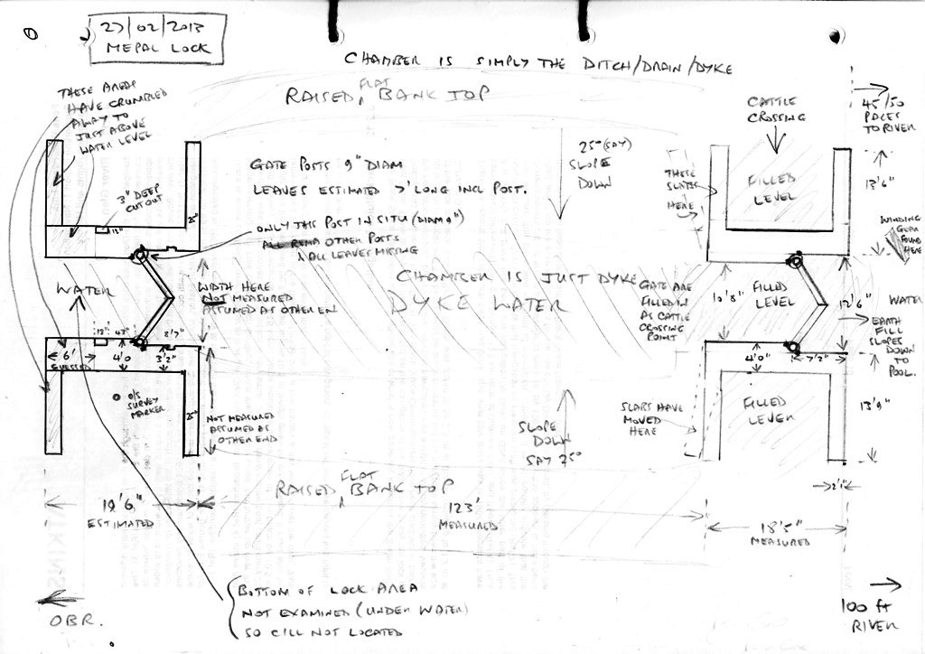 On right are my rough sketchs of the top of the lock gate enclosure, and the gudgeon pin