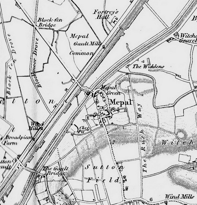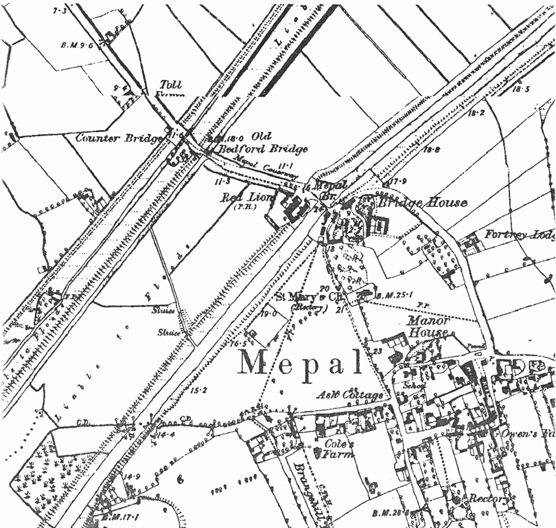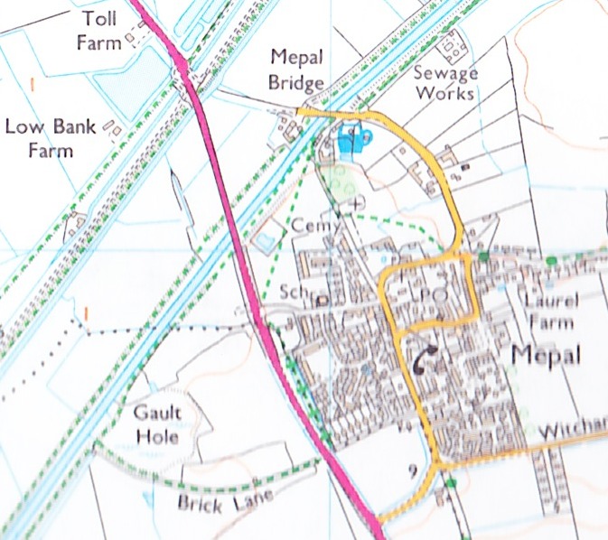 of the road through Mepal is wrong, and he has omitted the buildings (including pub and