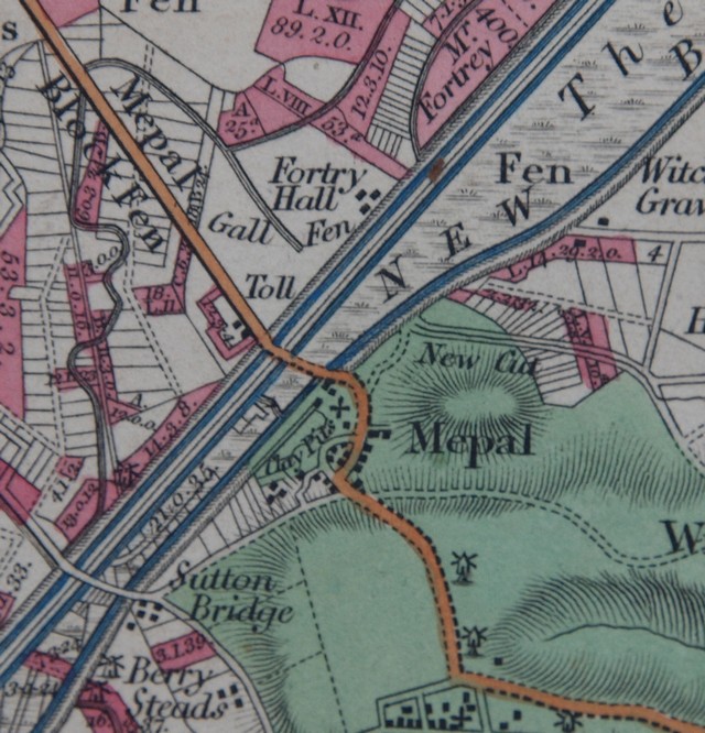 Later he refers to "Owen's Sluice and Drain, across the Wash near Mepal, erected for boating silt and high-land eath from Branghill Pits, near Sutton, for the repair of the banks on the